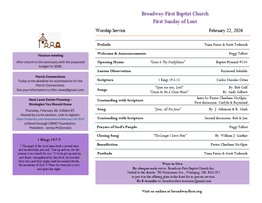 The people of Broadway-First Baptist Church invite you to attend in person, or via Zoom broadcast, our Sunday worship service, starting at 10:30 a.m. Closed captioning for the Zoom live-stream will be available. Please see below for our location and Zoom link.